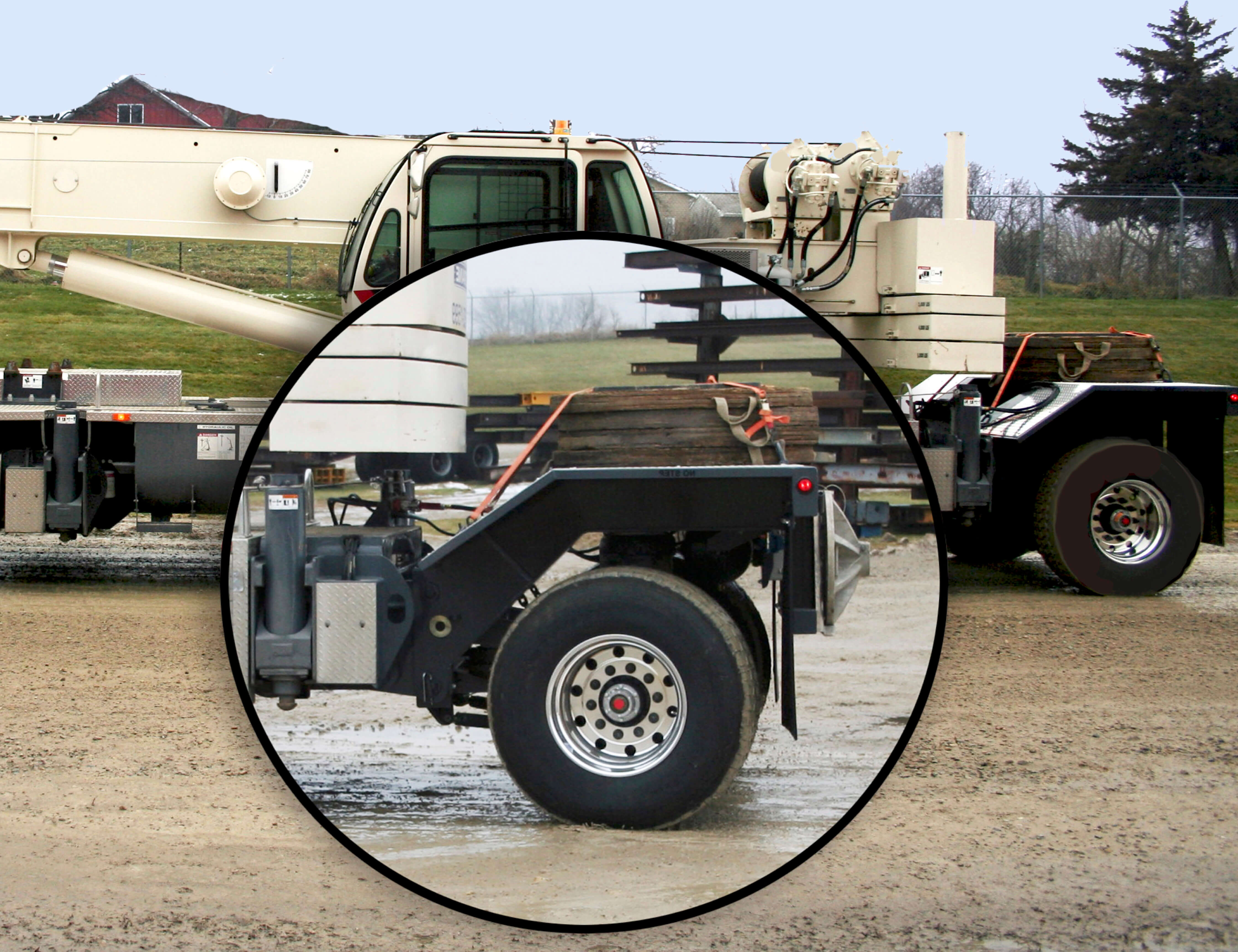 HMR Supplies manufactures the Holland crane tag axle for those customers needing an additional axle to spread the crane vehicle weight over a greater area. Tag axles can be raised or lowered to meet the seasonal vehicle weight restrictions or on certain weight-limited roads. See features and options at www.boomdollies.com .